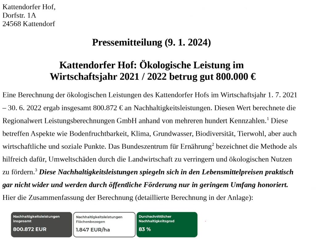 Während in der 2. Januarwoche 2024 heftige Bauernproteste das Land teilweise lahmlegen, erhielten wir eine Berechnung des finanziellen Wertes der ökologischen und sonstigen Nachhaltigkeitsleistungen, die wir für die Gesellschaft praktisch kostenlos erbringen.