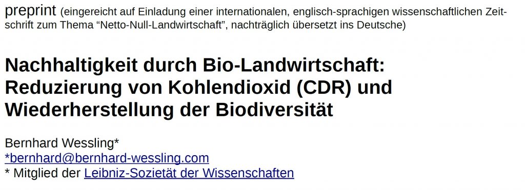 Die CO₂-Speicherung durch natürliche oder renaturierte Ökosysteme, einschließlich der biologischen Landwirtschaft, ist nicht nur nachhaltig, sondern trägt im Gegensatz zu technologischen Ansätzen der CO₂-Reduktion zur Wiederherstellung der biologischen Vielfalt bei.