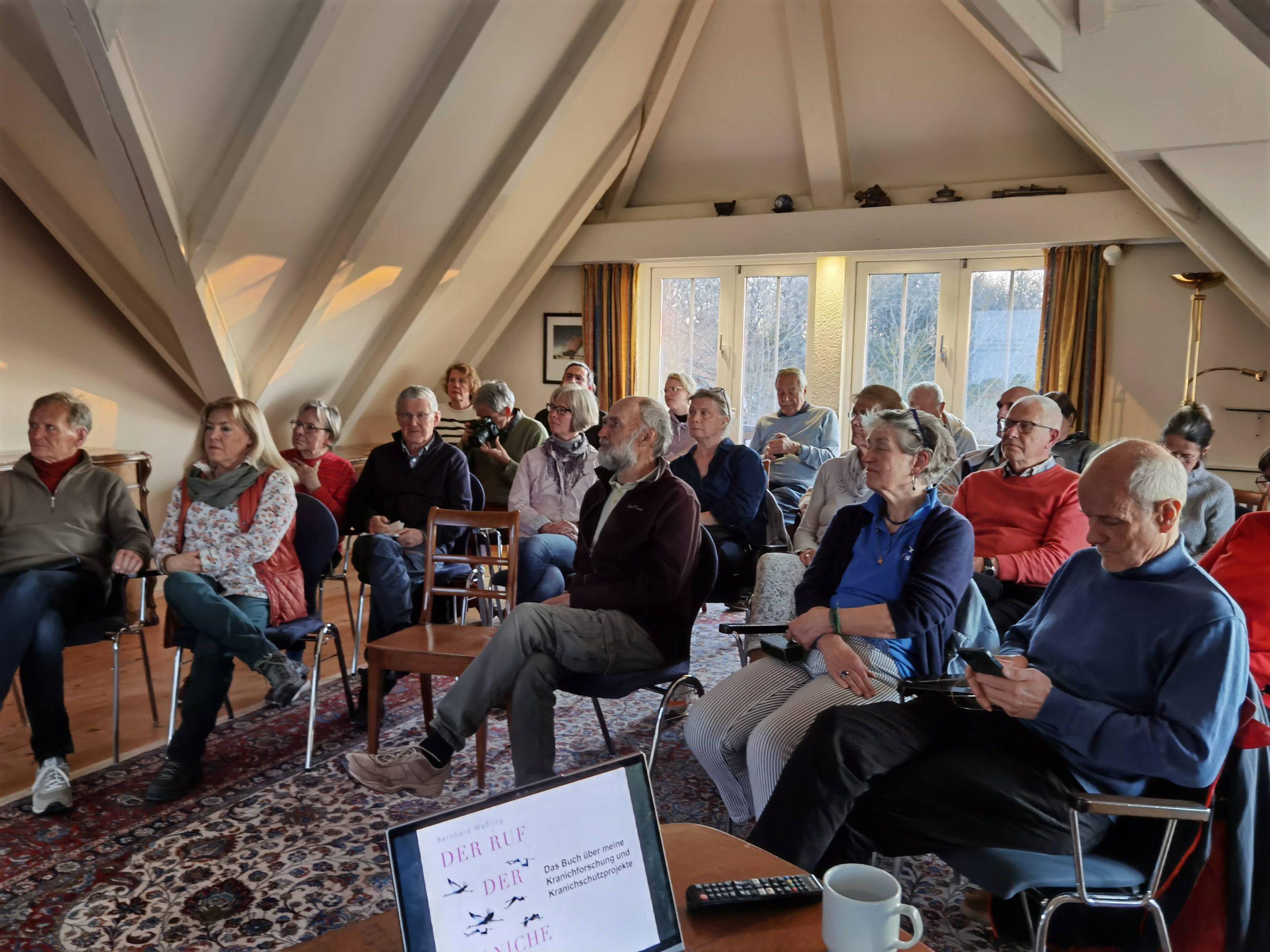 Vortrag über meine Kranichforschung und das Buch „Der Ruf der Kraniche“. Von allen bisherigen Präsenz-Vorträgen der mit der größten Resonanz: 75 Zuhörer (viel mehr als die erwarteten 25 – 30) waren begeistert!